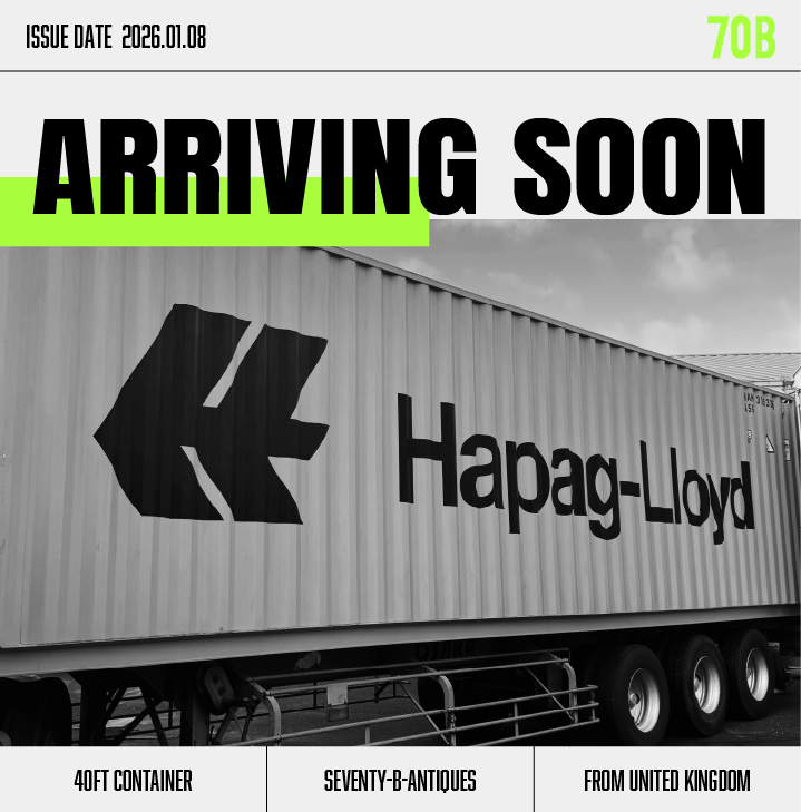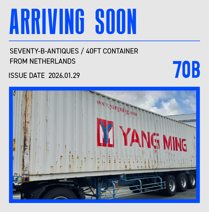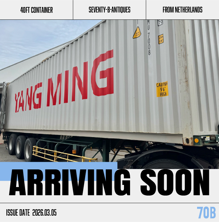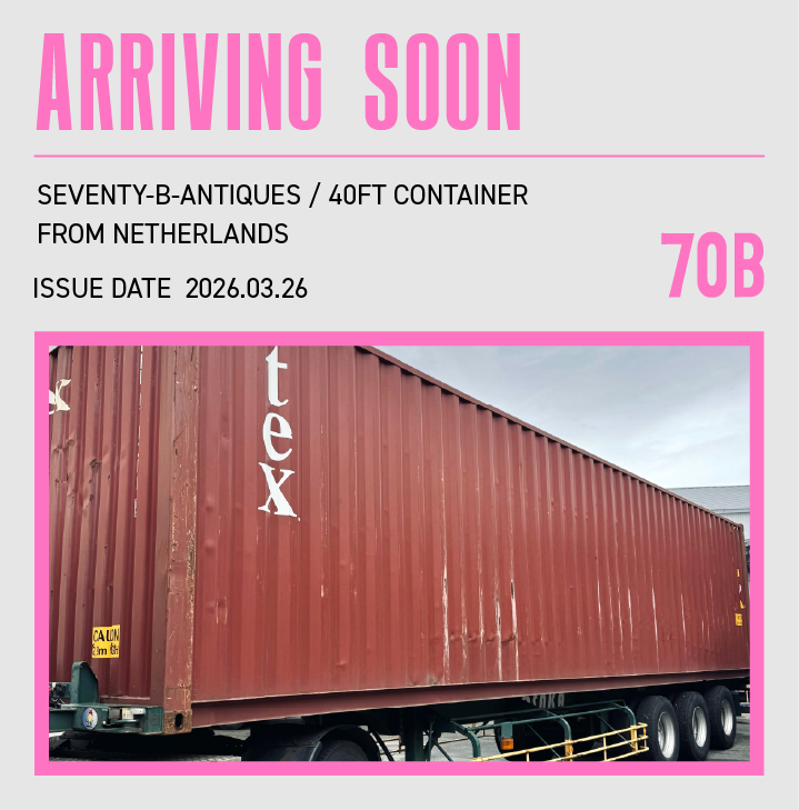 70B INC.は、世界中から40ftコンテナで年間50本以上の直輸入を行う、西日本最大級のアンティーク&ヴィンテージショップです。