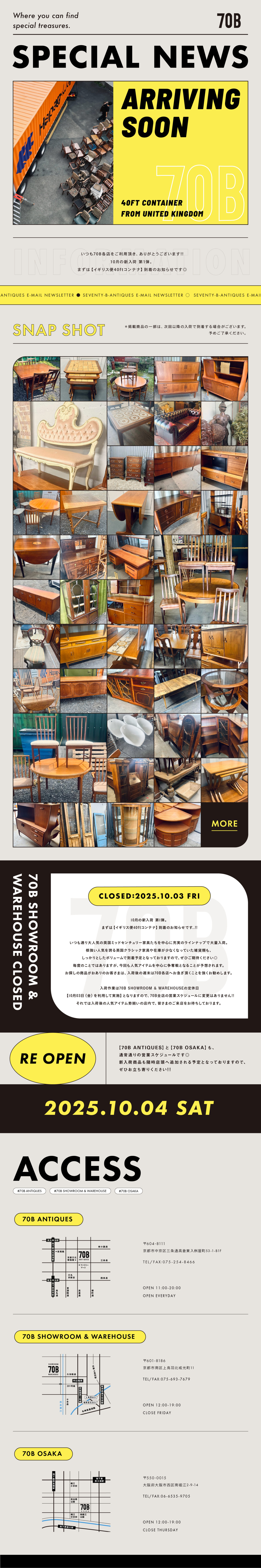 今回も70B SHOWROOM & WAREHOUSEの定休日(金曜)を利用して入荷作業を実施しておりますので、
