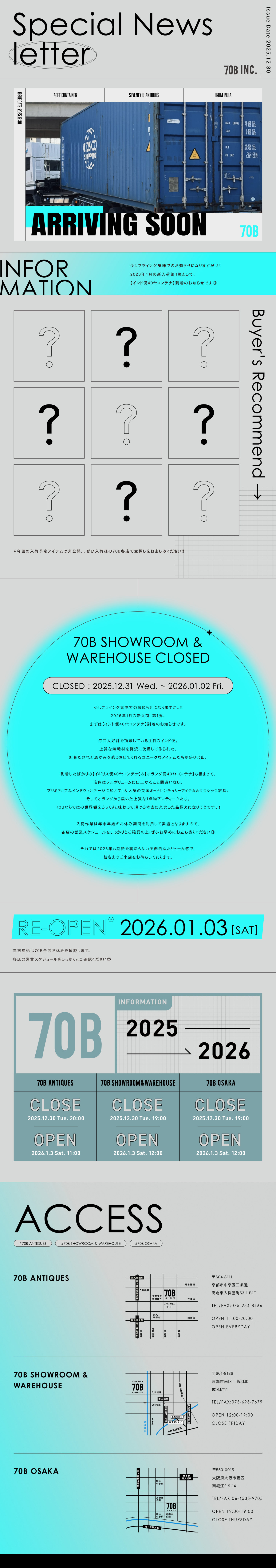 【70B全店 2026年01月03日(土)より営業開始!!】となります。