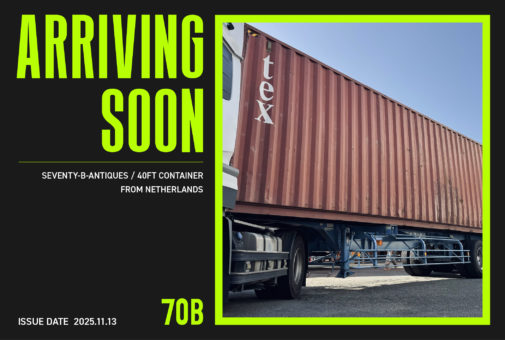 11月の新入荷 第4弾。今週は【オランダ便40ftコンテナ】到着のお知らせです!! 今回も70B SHOWROOM & WAREHOUSEの定休日(金曜)を利用して入荷作業を実施しておりますので、【70B全店 通常通りの営…